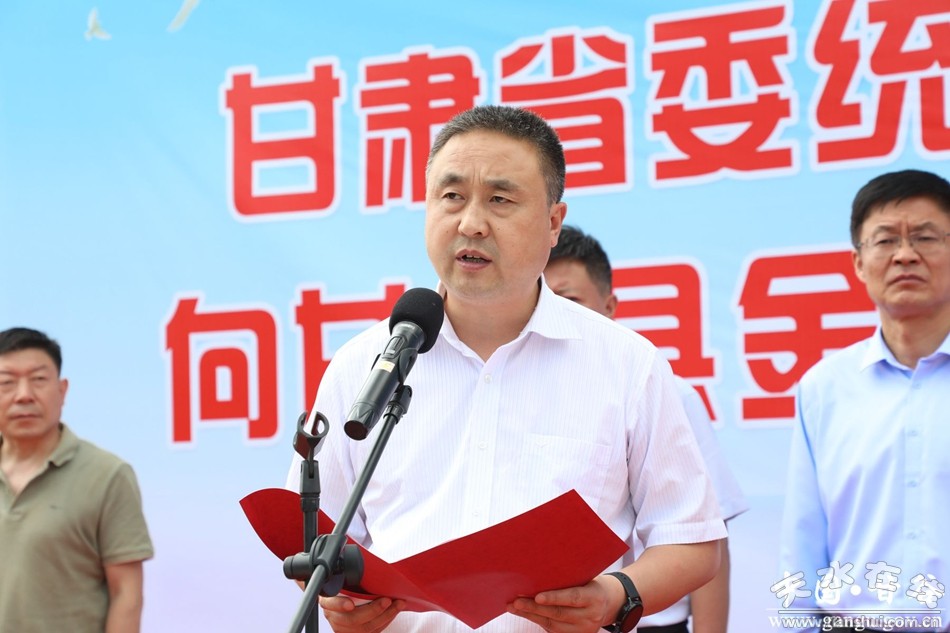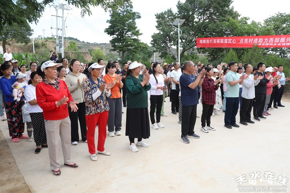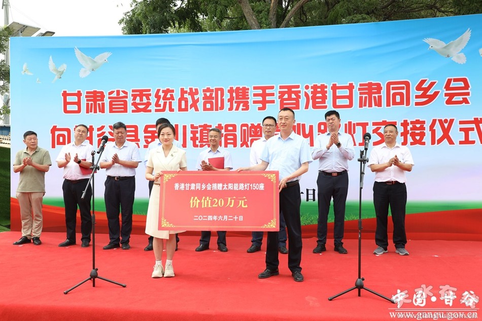 新甘谷訊【記者李宛郁】6月20日,甘肅省委統(tǒng)戰(zhàn)部攜手香港甘肅同鄉(xiāng)會捐贈愛心路燈交接儀式在甘谷縣金山鎮(zhèn)七家山村舉行。省委統(tǒng)戰(zhàn)部副部長郁川虎,香港甘肅同鄉(xiāng)會副會長姚軍平,縣委常委、統(tǒng)戰(zhàn)部部長王見學出席儀式并講話。省委統(tǒng)戰(zhàn)部三處處長魏茂強,省委統(tǒng)戰(zhàn)部三處二級調研員楊健國,香港甘肅同鄉(xiāng)會秘書長張莉,縣委副書記、縣長孫忠平出席儀式。市委統(tǒng)戰(zhàn)部副部長、工商聯(lián)黨組書記韓廣文主持儀式。金山鎮(zhèn)部分干部、七家山村村組干部及群眾代表共計60余人參加儀式。