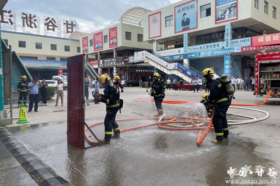 新甘谷訊【通訊員王俊】為進(jìn)一步提高商業(yè)項(xiàng)目員工和商戶消防安全意識(shí),提升突發(fā)事件的應(yīng)急處置和自救互救能力,進(jìn)一步貫徹落實(shí)2024年“安全生產(chǎn)月”工作要求,6月20日,甘谷縣消防救援大隊(duì)走進(jìn)浙江商貿(mào)城開展消防安全教育培訓(xùn)和應(yīng)急疏散滅火演練活動(dòng)。