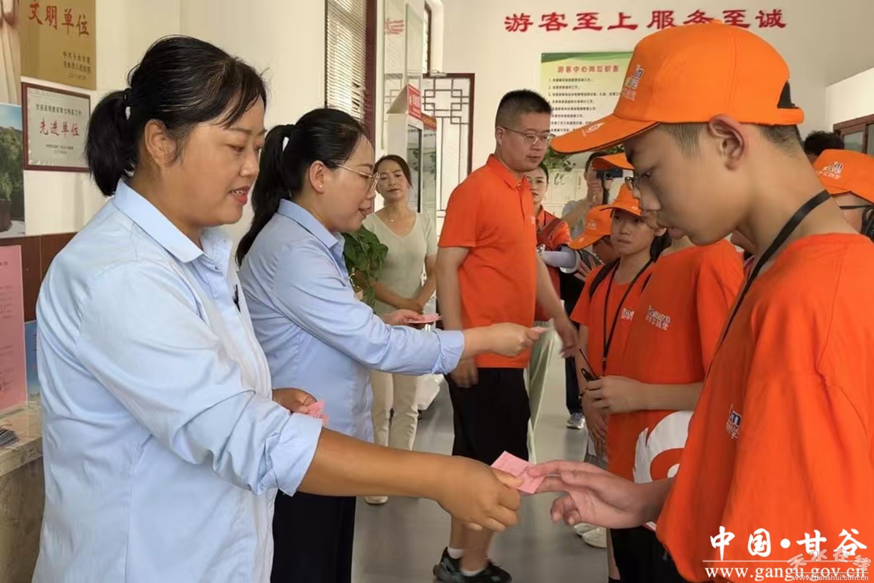 暑期正酣,每天來(lái)甘谷旅游的人絡(luò)繹不絕。在大像山景區(qū)游客服務(wù)中心,記者看到來(lái)自江蘇省徐州市的一個(gè)研學(xué)團(tuán)隊(duì)的學(xué)員們,正在排隊(duì)依次背誦詩(shī)詞。