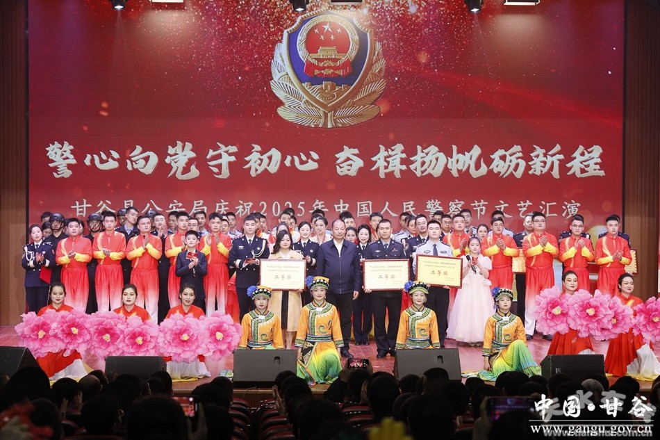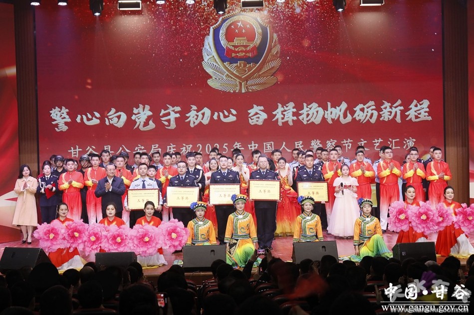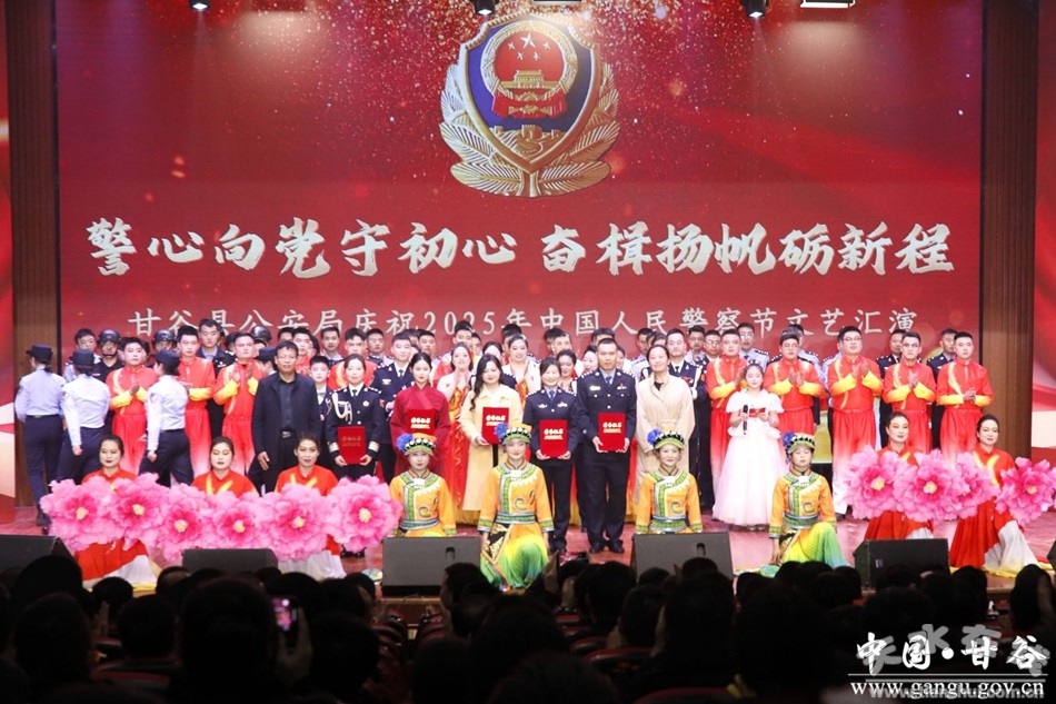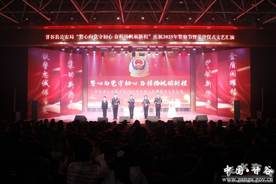 新甘谷訊【記者頡鳳】鼓角聲聲催奮進(jìn),警徽熠熠耀征程。在第五個(gè)中國(guó)人民警察節(jié)來(lái)臨之際,為全面展現(xiàn)甘谷公安維護(hù)國(guó)家政治安全、社會(huì)穩(wěn)定的新?lián)?dāng)、新作為和對(duì)黨忠誠(chéng)、服務(wù)人民、執(zhí)法公正、紀(jì)律嚴(yán)明的精神風(fēng)貌,切實(shí)激發(fā)廣大民輔警職業(yè)榮譽(yù)感和自豪感,激勵(lì)全警忠誠(chéng)履職、擔(dān)當(dāng)奮進(jìn),1月9日晚,甘谷縣公安局舉辦“警心向黨守初心,奮楫揚(yáng)帆礪新程”慶祝2025年中國(guó)人民警察節(jié)文藝晚會(huì)暨榮譽(yù)授予儀式。