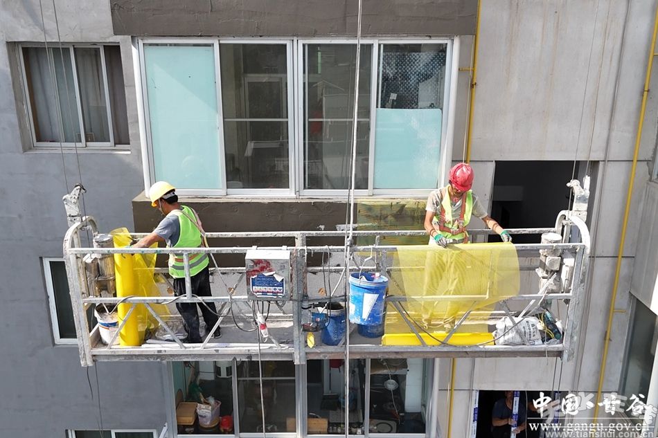 走進甘谷縣城某老舊小區(qū)改造現(xiàn)場,空氣的熱浪中彌漫著建材的味道。工人們穿著被汗水浸透的衣衫,在腳手架上穿梭,有條不紊地進行著各項作業(yè)。他們有的手持抹子涂抹砂漿,有的小心翼翼地將保溫板對齊粘貼,每一個動作都嚴謹細致。
