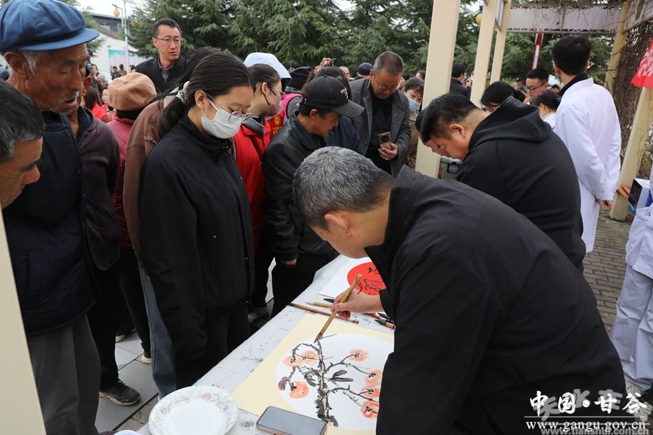 縣醫(yī)院的專家們搭建起臨時的“健康驛站”,為往來群眾提供內(nèi)外婦兒各科的義診服務,并耐心普及婚前醫(yī)學檢查知識,為美滿婚姻筑牢健康根基;幾位本地書畫愛好者現(xiàn)場揮毫潑墨,“和美家風”“婚事新辦”等一幅幅承載著美好祝愿又倡導簡約新風的書畫作品被創(chuàng)作出來,并一一贈送給村民,于筆墨間傳遞文明理念。