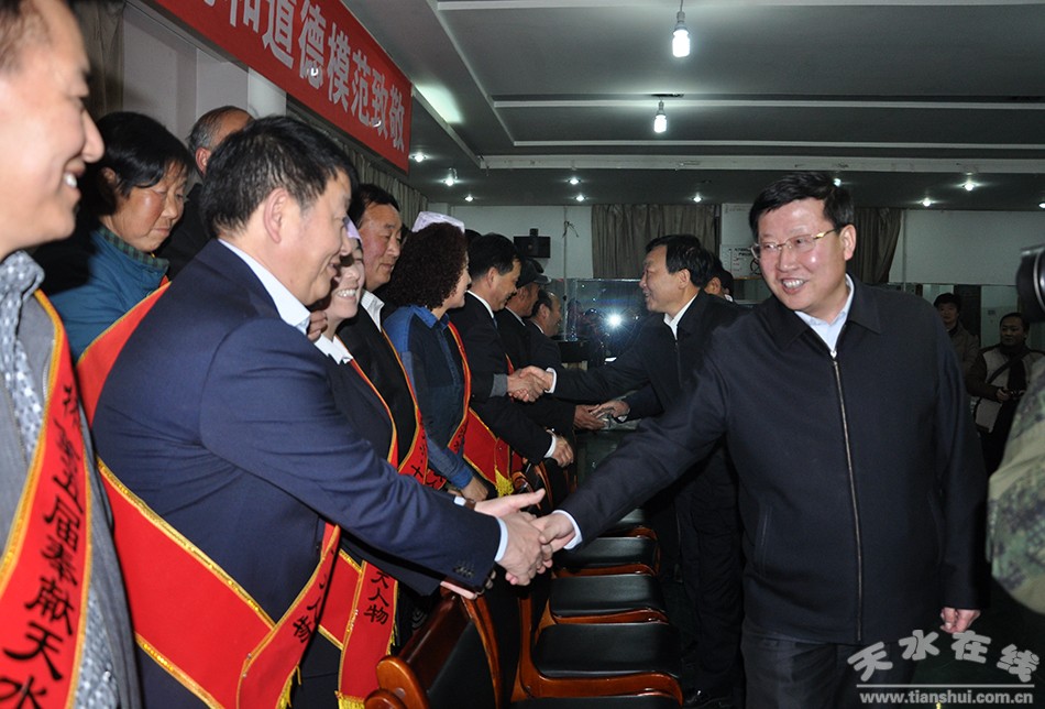 頒獎典禮開始前,宋尚有等市領導還親切接見了第五屆奉獻天水·十大人物和市第四屆道德模范并與他們合影。