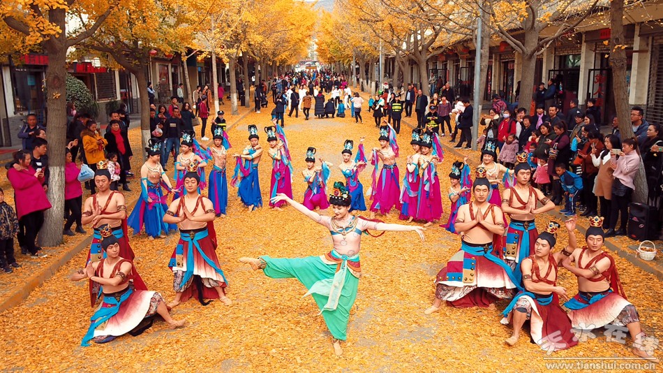 自7日以來,各種由天水市民和民間團體自發(fā)組織的才藝表演,便在“黃金大道”的銀杏樹下輪番上演,其中不乏由天水市歌舞團等專業(yè)隊伍表演的《天女散花》等展現(xiàn)本土文化的大戲。而11日的“快閃”藝術(shù),則將融合了市民演繹的銀杏觀賞帶至高潮。