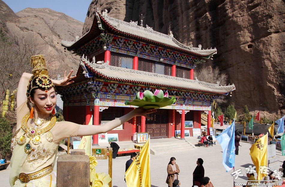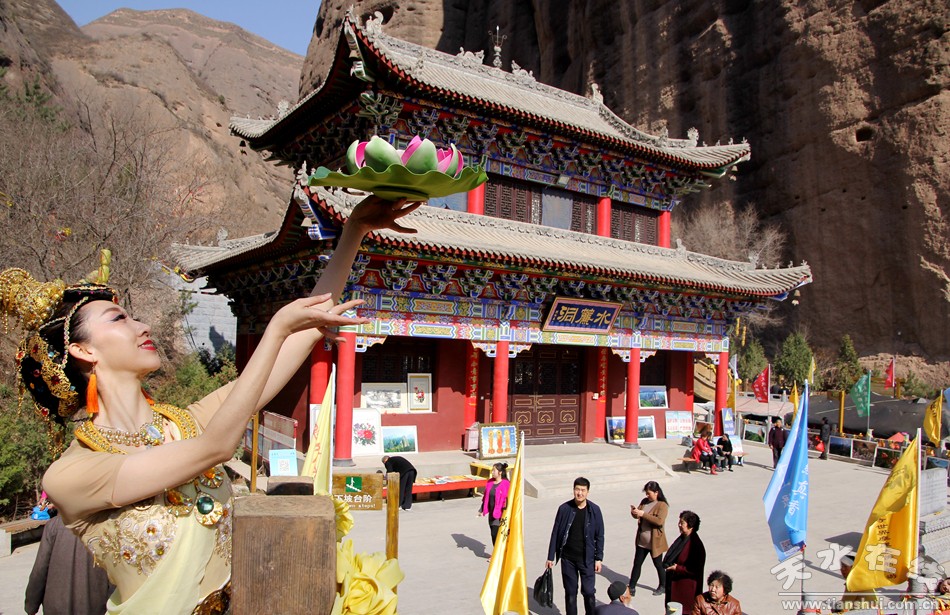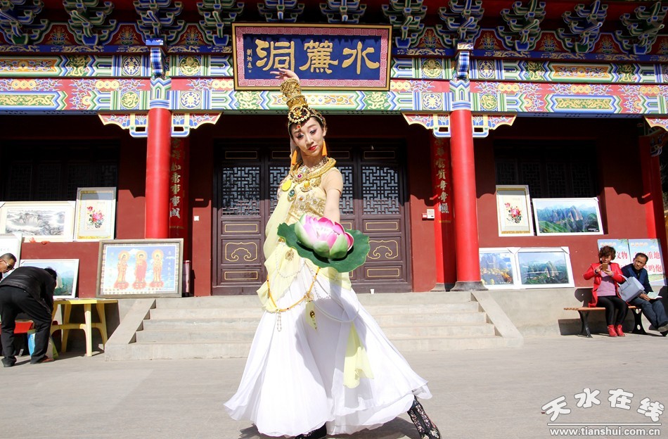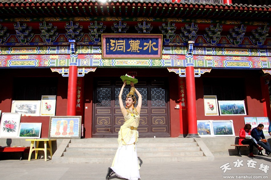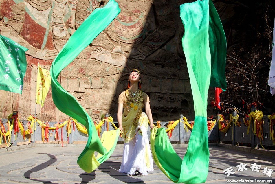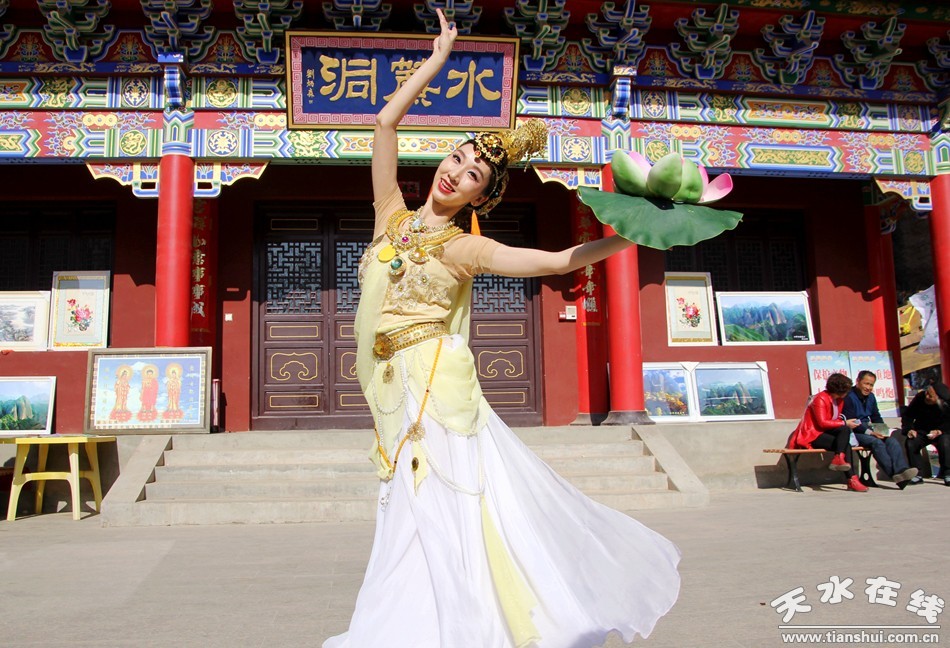 天水在線報(bào)道 3月25日,由北京一真天然真香善業(yè)發(fā)起的“保護(hù)青山綠水、倡導(dǎo)文明旅游”大型公益活動(dòng)在武山縣水簾洞景區(qū)舉行,天水白娃娃燁冉應(yīng)邀參加并表演敦煌舞。