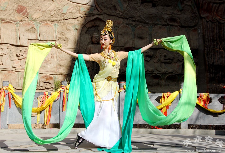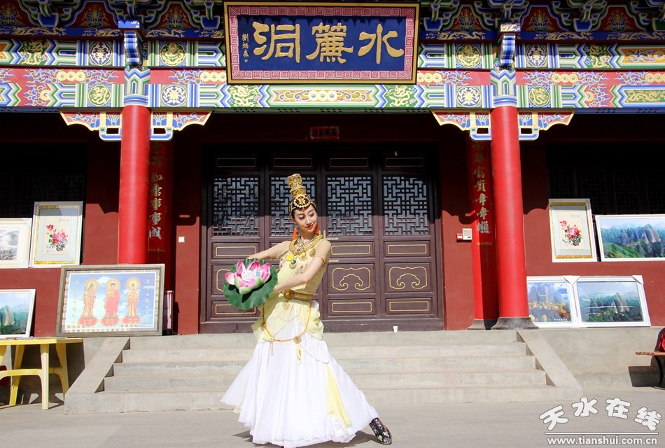 (天水白娃娃燁冉在水簾洞表演敦煌舞)