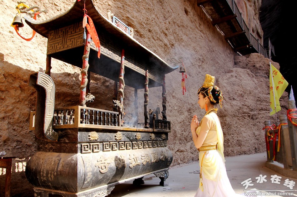 (天水白娃娃燁冉在水簾洞拜佛)