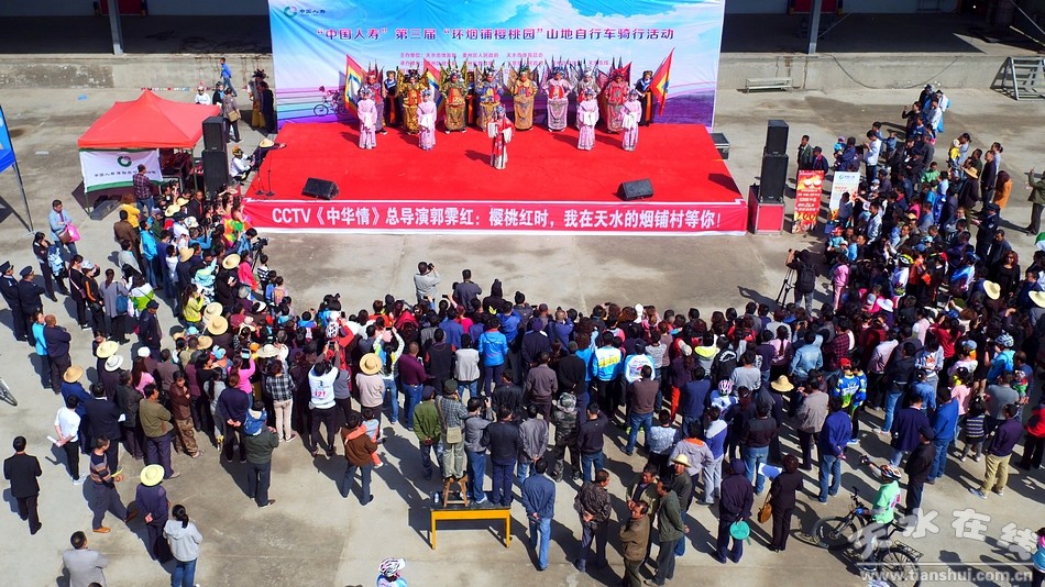 ▲2017年5月20日,秦州區(qū)玉泉鎮(zhèn)煙鋪櫻桃季鄉(xiāng)村旅游節(jié)開幕式暨第四屆“環(huán)煙鋪櫻桃園”山地自行車賽,在秦州區(qū)玉泉鎮(zhèn)煙鋪村舉行。圖為文藝演出。