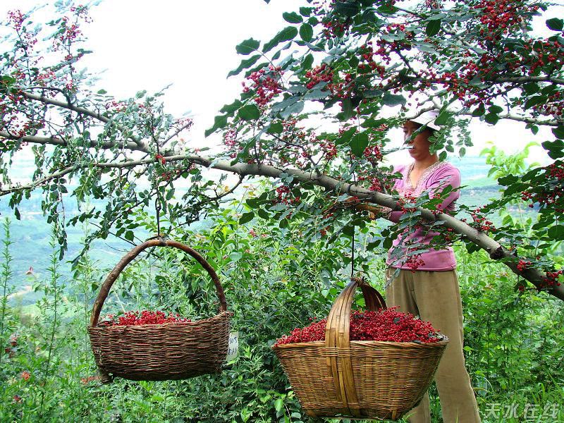 是秦州五月的紅櫻桃 是秦安七月的水蜜桃 是麥積八月的花牛蘋果 是清水十月的柿子林 是秦安的花椒 更是甘谷的辣椒