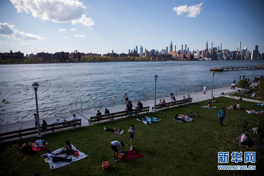 5月3日,人們在美國紐約華盛頓廣場公園享受陽光。