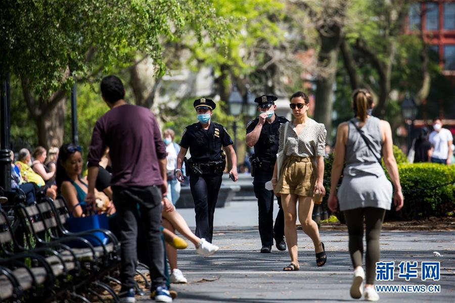 5月3日,警察在美國紐約華盛頓廣場公園巡邏。