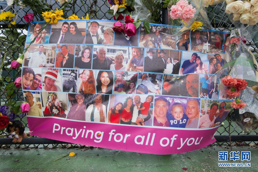 這是7月6日在美國佛羅里達(dá)州邁阿密-戴德縣坍塌的住宅樓附近拍攝的悼念墻。新華社發(fā)(莫妮卡·麥克蓋文攝)