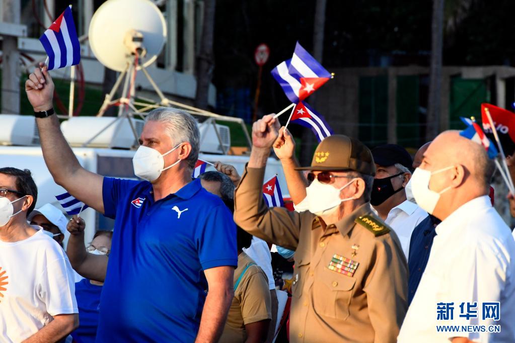 約10萬民眾17日聚集在古巴首都哈瓦那海濱大道一處廣場舉行愛國集會。古巴革命領(lǐng)袖勞爾·卡斯特羅、迪亞斯-卡內(nèi)爾和其他黨、政府以及社會群眾組織領(lǐng)導(dǎo)人出席集會。迪亞斯-卡內(nèi)爾當(dāng)天發(fā)表講話時做出上述表態(tài),并同時號召民眾團(tuán)結(jié)一致,抵御外部勢力干涉。