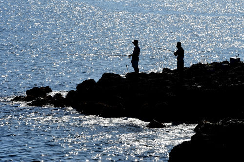2019年8月28日,垂釣者在澎湖海岸邊釣魚。新華社記者朱祥 攝