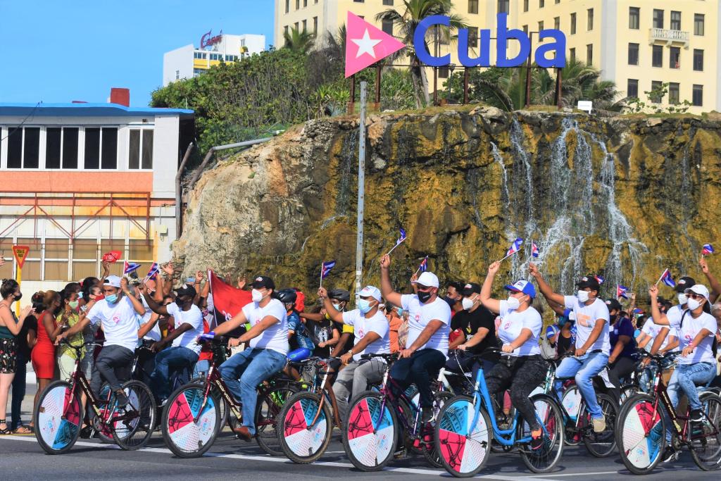 2021年8月5日,數(shù)百名古巴青年在首都哈瓦那舉行保衛(wèi)國家和平、團結反美游行,要求美國解除對古巴近60年的封鎖。新華社發(fā)(華金·埃爾南德斯攝)