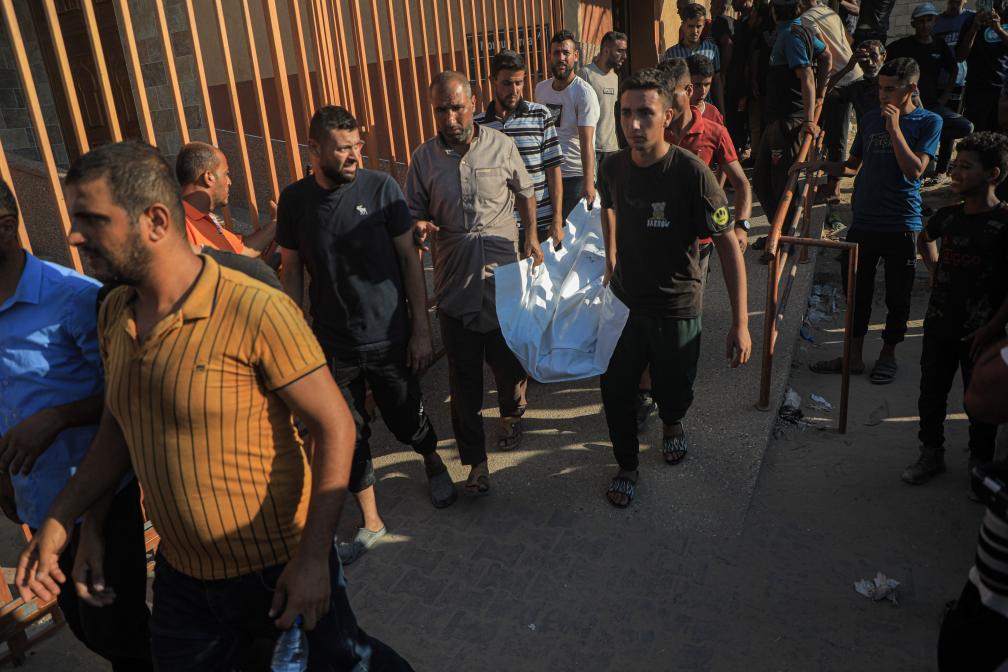 8月14日,在加沙地帶南部城市汗尤尼斯,人們搬運(yùn)以軍襲擊遇難者的遺體。新華社發(fā)(里澤克·阿卜杜勒賈瓦德攝)