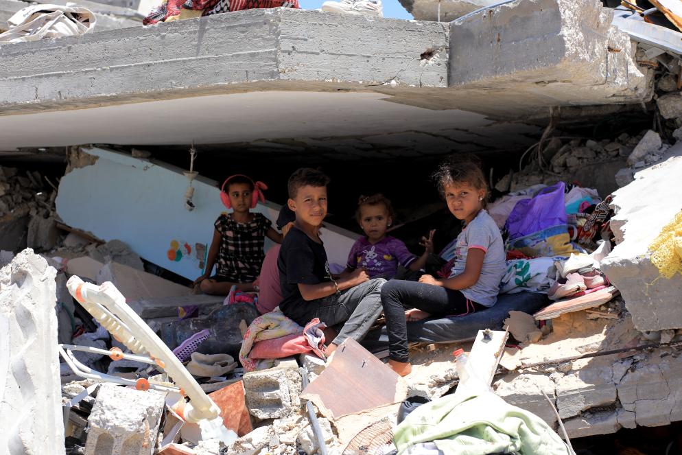 這是5月31日在加沙地帶南部城市汗尤尼斯一處廢墟中拍攝的兒童。新華社發(fā)(里澤克·阿卜杜勒賈瓦德攝)