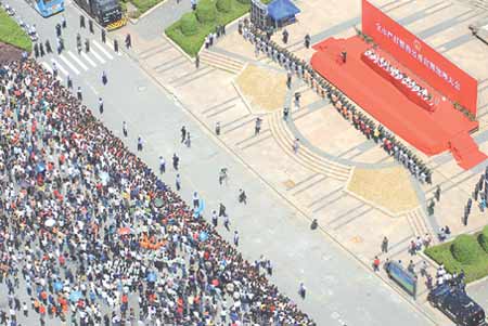 | 公開(kāi)宣判處理大會(huì)現(xiàn)場(chǎng),擠滿(mǎn)了上萬(wàn)名前來(lái)觀(guān)看的群眾。 蔣文廣攝 |