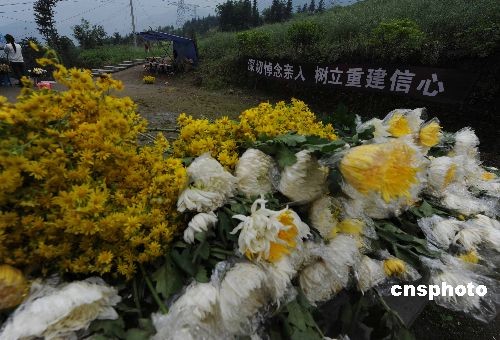 “5·12四川大地震”一周年祭日,震中映秀鎮(zhèn)遇難同胞公墓里擺滿鮮花和野花。 中新社發(fā) 賈國榮 攝