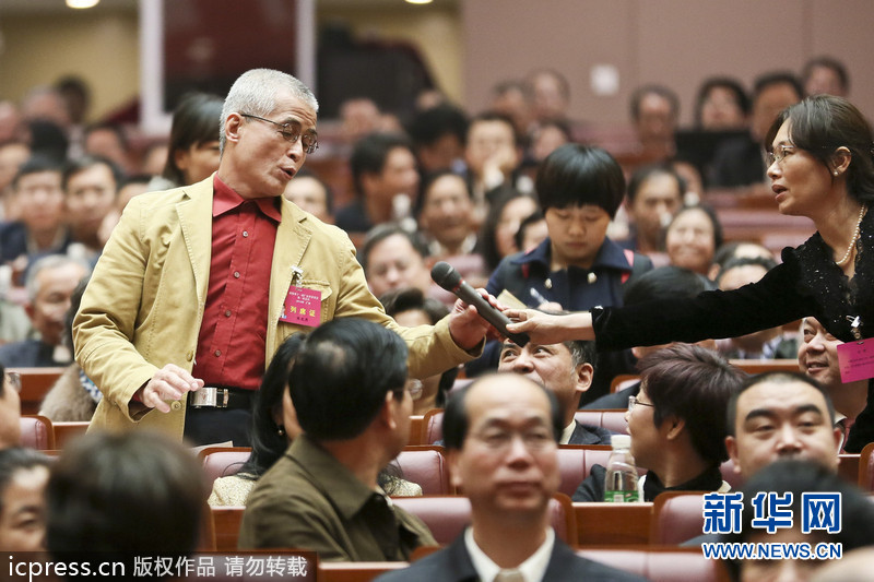 “有哪位委員想發(fā)言?請舉手!贝髸鞒秩嗽捯魟偮,現(xiàn)場頓時熱鬧起來。政協(xié)委員們有的揮舞著絲巾,有的舉起手中的筆記本,不少政協(xié)委員為了引起主持人注意,甚至激動地從座位上站起來。