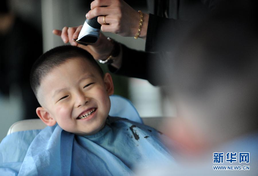 3月13日,沈陽市一家美發(fā)店在“二月二”這一天為顧客免費(fèi)理發(fā)。 當(dāng)日是農(nóng)歷二月初二,中國民間有“二月二,龍?zhí)ь^”的說法。在這一天,家長帶著孩子到理發(fā)店理發(fā),為新的一年討個好彩頭。小朋友“剃龍頭”時的“五味表情”也成為他們難忘的童年記憶。 新華社發(fā)(張文魁 攝)