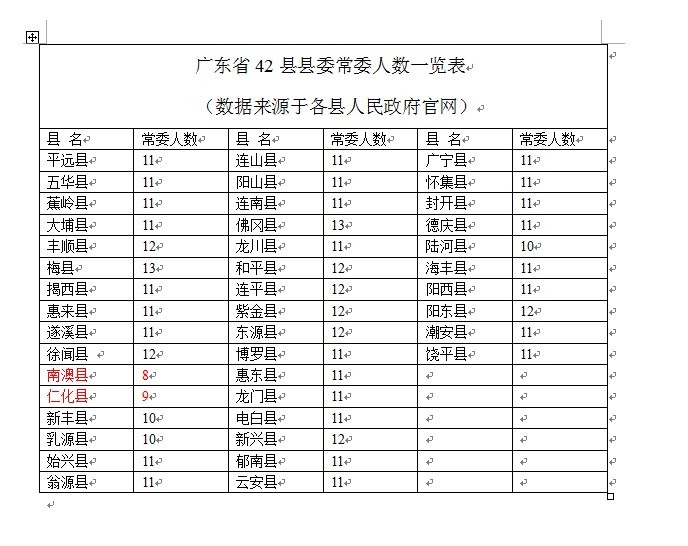 根據(jù)能查閱到的公開(kāi)資料,目前,仁化縣和南澳縣的常委人數(shù)未超過(guò)9名。這兩個(gè)縣,可謂在“減官削職”方面“先行一步”。