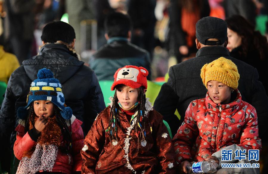 1月16日,在青海西寧西站,幾名小乘客在候車廳等候。當(dāng)日,2014年春運開始,記者來到火車站,用鏡頭記錄下春運大潮中的旅客百態(tài)。 新華社記者吳剛攝
