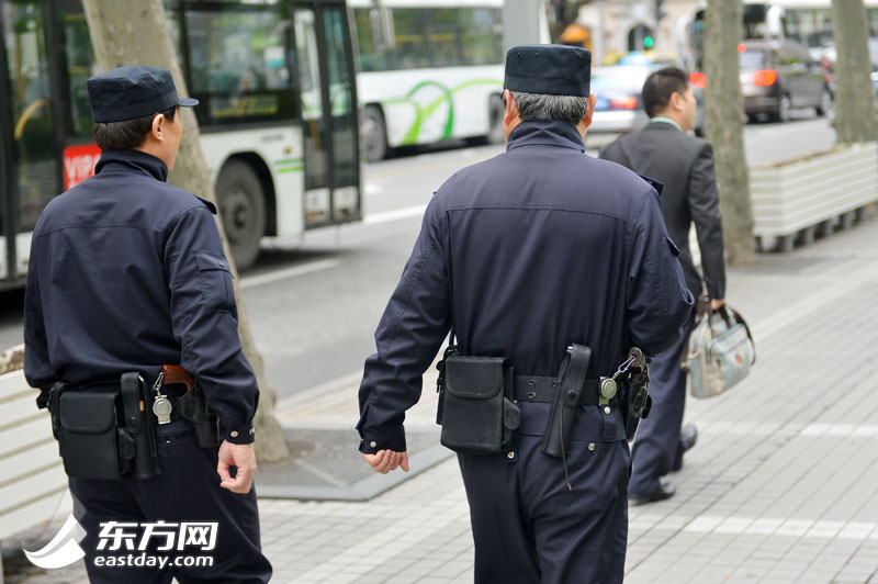 上海市公安局靜安分局南京西路派出所兩位巡邏民警正在南京西路上進(jìn)行巡邏任務(wù)。(來源:東方網(wǎng),攝影:徐程)