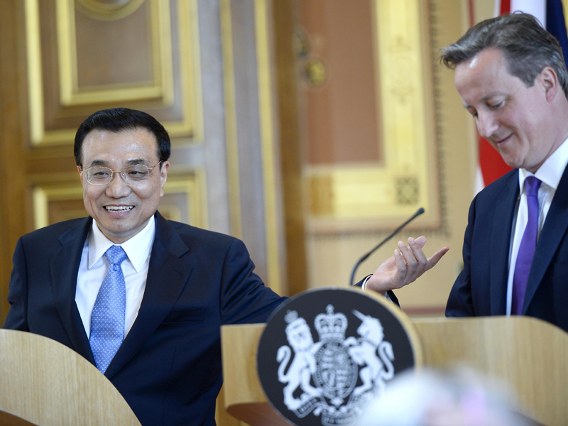 在頗有古典特色的英國外交部大樓內(nèi),中國國務(wù)院總理李克強與英國首相共同見證了兩國間一系列合作文件的簽署。
