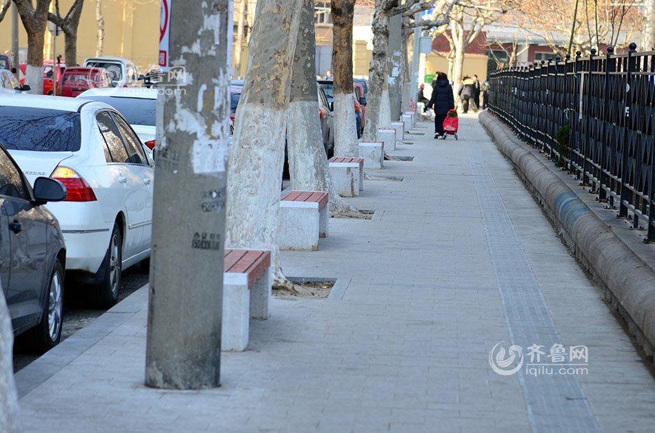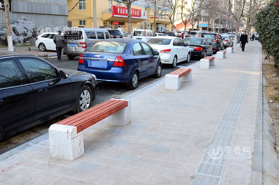 近日,青島市北區(qū)浦口路北側(cè)400多米的人行道上密密麻麻的安裝了56個(gè)長(zhǎng)凳防止亂停車,一眼望去甚是壯觀,被網(wǎng)友戲稱為“防亂停車神器”。記者實(shí)地探訪發(fā)現(xiàn),浦口路人行道的長(zhǎng)凳之間還夾雜著樹木和電線桿,留給機(jī)動(dòng)車可“鉆”的空子非常狹小。(齊魯網(wǎng)記者孫志文 攝)