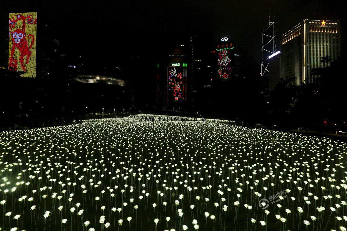 2月13日,來自韓國首爾的LED Rose Garden大型公共展覽亮相香港。25000朵LED白玫瑰花燈在中環(huán)海濱展出,在情人節(jié)即將到來之際點亮維港,營造出浪漫甜蜜的氛圍。