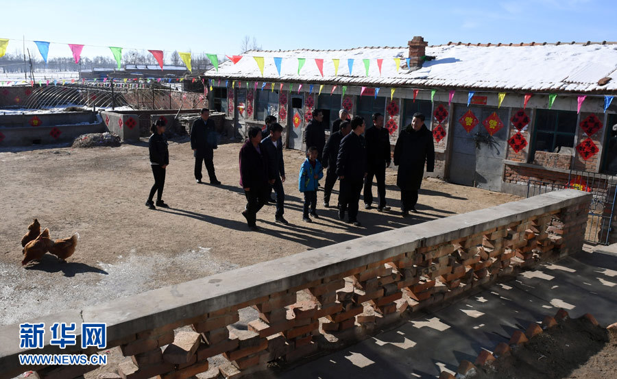 這是習(xí)近平在張北縣小二臺(tái)鎮(zhèn)德勝村看望慰問(wèn)村民,向鄉(xiāng)親們拜年。新華社記者 李濤 攝