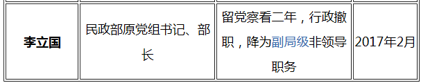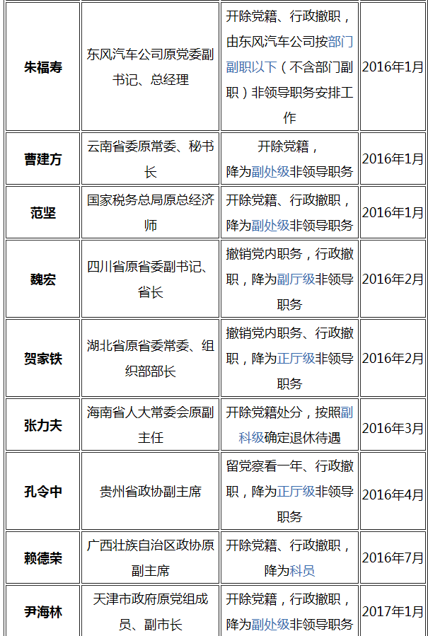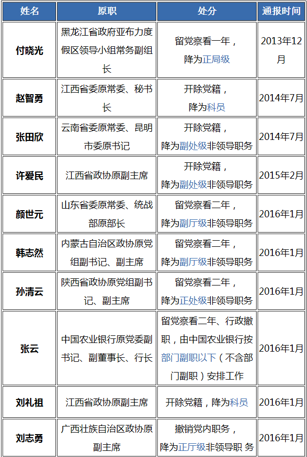 附表:十八大以來受到降級處理的省部級干部