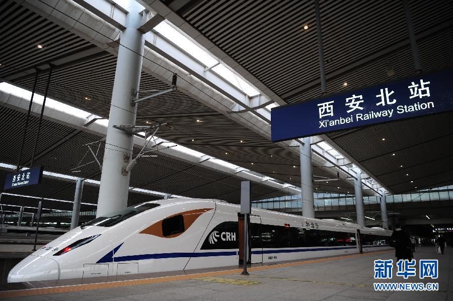 2017年11月22日,西成高鐵進(jìn)入全線拉通試驗(yàn)階段。圖為55251次動車組試驗(yàn)車準(zhǔn)備從西安北站駛出。新華社發(fā)(張博文攝)