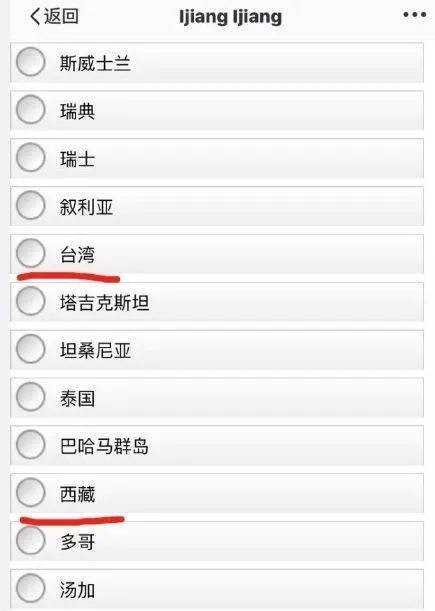 當(dāng)他們在活動(dòng)的頁面上填寫信息時(shí),選擇“國家”的列表里,竟赫然出現(xiàn)香港、澳門、臺灣以及西藏的選項(xiàng)。