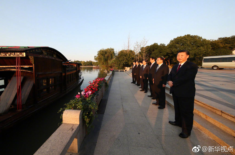 黨的十九大閉幕僅一周,習(xí)近平總書記帶領(lǐng)中央政治局常委來到上海中共一大會(huì)址和浙江嘉興南湖紅船,回顧建黨歷史,重溫入黨誓詞,宣誓堅(jiān)定政治信念。