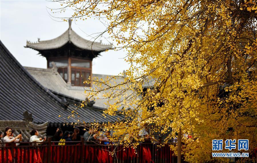11月11日拍攝的羅漢洞村古觀音禪寺內(nèi)的千年銀杏樹。新華社記者 劉瀟 攝