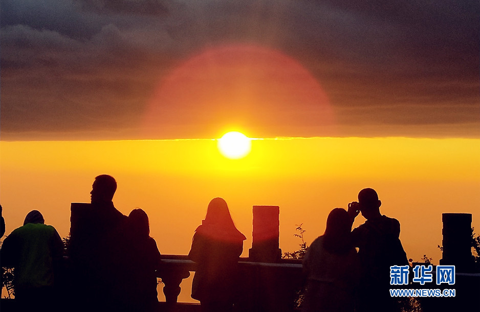 伴隨著人群的躁動(dòng),泰山的太陽露出了光芒。新華網(wǎng)發(fā)(謝玉奎 攝)