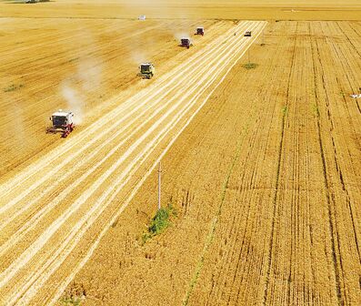 圖為河北省石家莊市欒城區(qū)西營(yíng)鄉(xiāng)麥?zhǔn)請(qǐng)鼍。李明發(fā)攝(影像中國(guó))