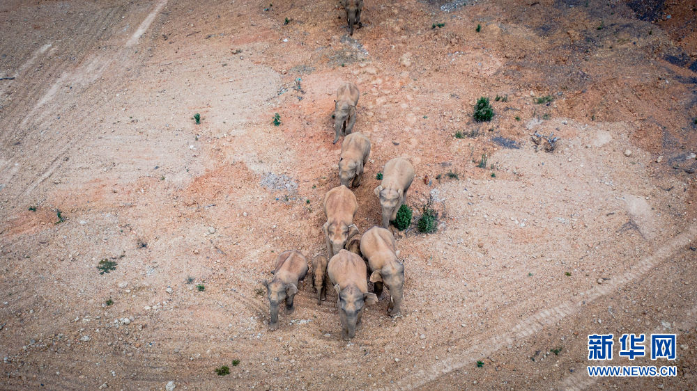 5月28日在云南省玉溪市峨山縣境內(nèi)拍攝的象群(無人機照片)。
