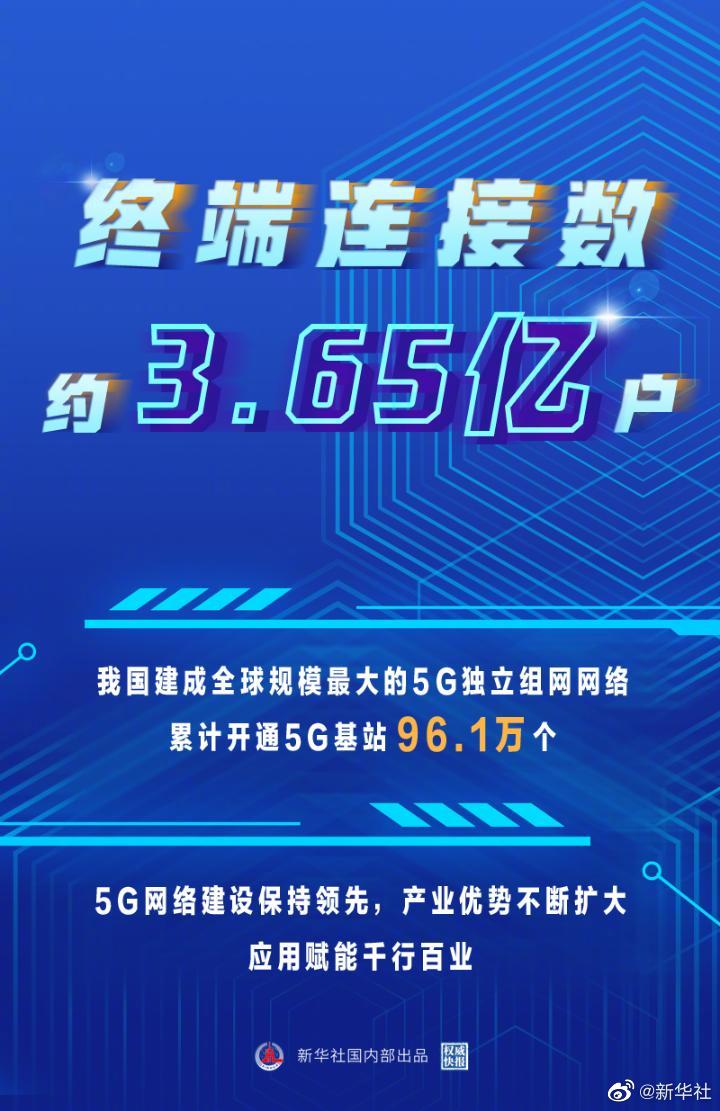 記者從16日國新辦召開的發(fā)布會上了解到,我國已建成全球規(guī)模最大的5G獨立組網(wǎng)網(wǎng)絡(luò),累計開通5G基站96.1萬個,5G終端連接數(shù)約3.65億戶。5G網(wǎng)絡(luò)建設(shè)保持領(lǐng)先、產(chǎn)業(yè)優(yōu)勢不斷擴大、應(yīng)用賦能千行百業(yè)。(記者張辛欣,海報設(shè)計賈伊寧)
