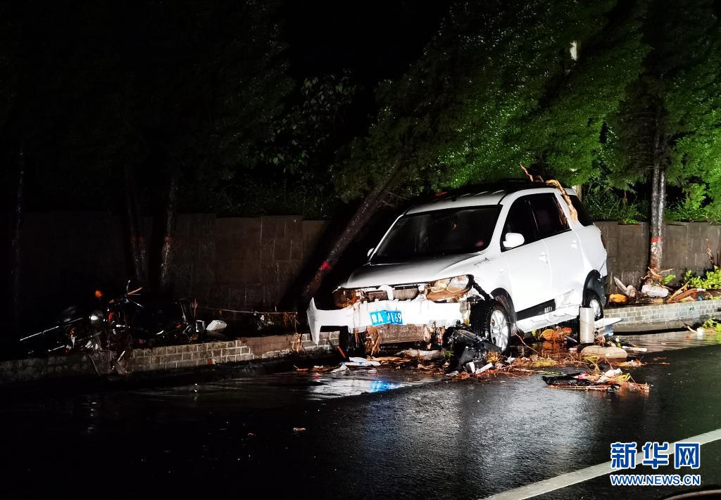 7月21日在310國道米河鎮(zhèn)段拍攝的一輛因洪水損壞的汽車。新華社記者 李嘉南 攝