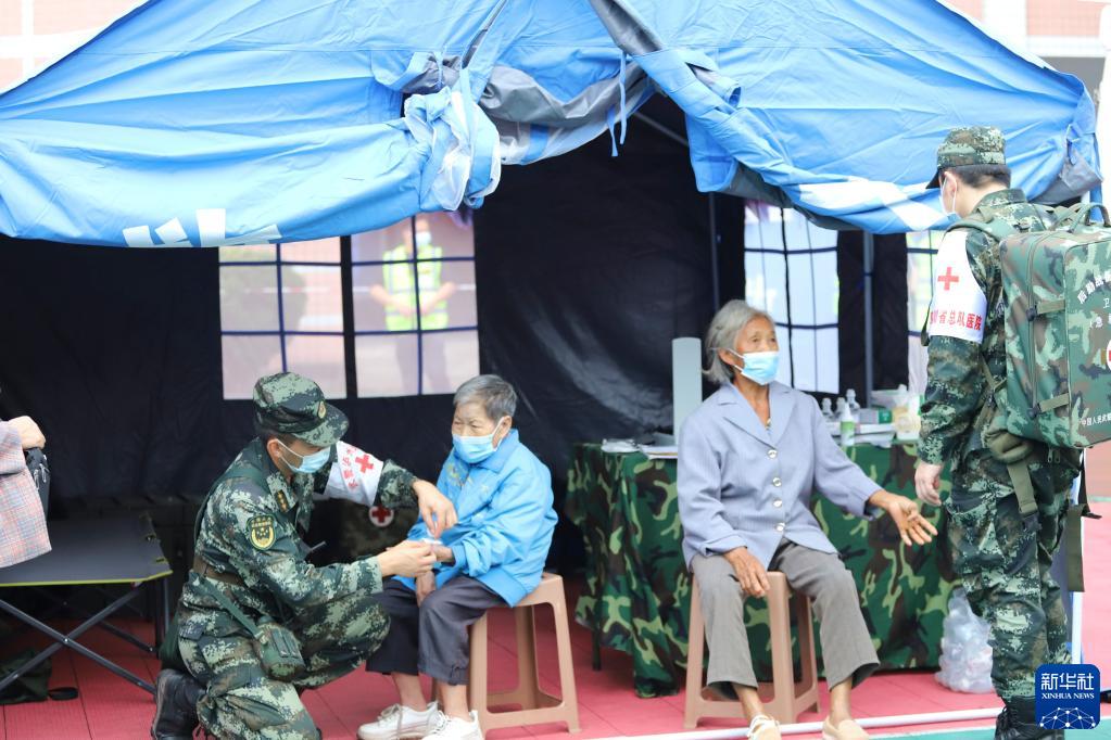 9月16日,武警四川總隊醫(yī)院官兵在瀘縣為受災(zāi)群眾開展醫(yī)療救助。新華社發(fā)(李華時 攝)