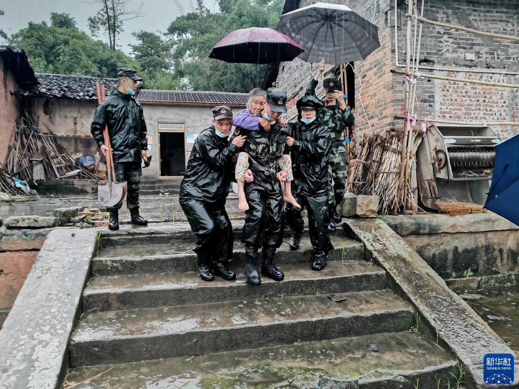9月16日,武警四川總隊瀘州支隊官兵在瀘縣福集鎮(zhèn)草壩村轉(zhuǎn)移受災(zāi)群眾(手機照片)。新華社發(fā)(向前 攝)