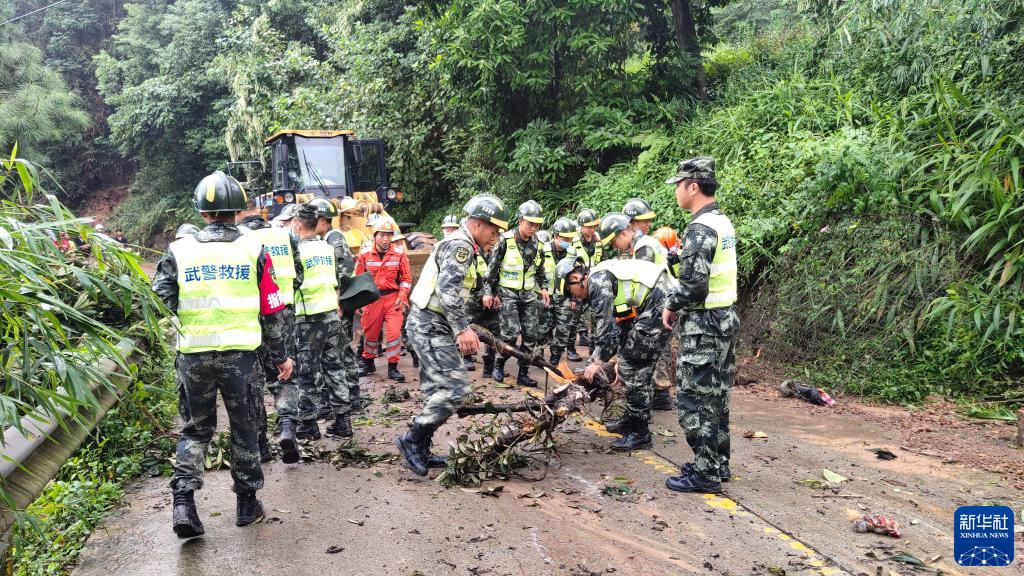 9月16日,武警第二機動總隊某支隊官兵在瀘縣搶通中斷的Y207公路(手機照片)。新華社發(fā)(馬春華 攝)