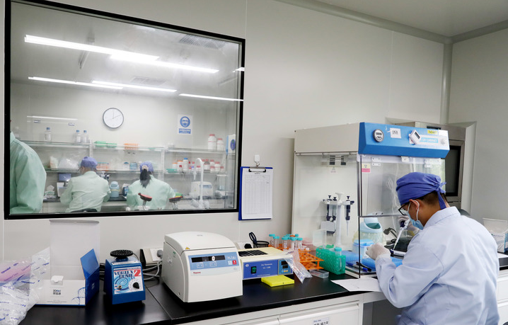 2021年9月6日,新冠流感聯(lián)檢試劑盒在上海投產(chǎn)分發(fā),這是工作人員在實驗室內(nèi)進行產(chǎn)品驗證。新華社記者方喆 攝