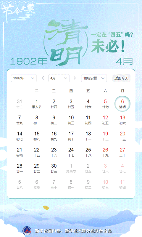 新華社天津4月5日電(記者周潤。4月5日迎來清明,應(yīng)了民間“四五清明”一說。清明一定在“四五”嗎?未必!天文科普專家表示,清明一般在公歷的4月4日到6日之間變動,但以4日和5日居多。