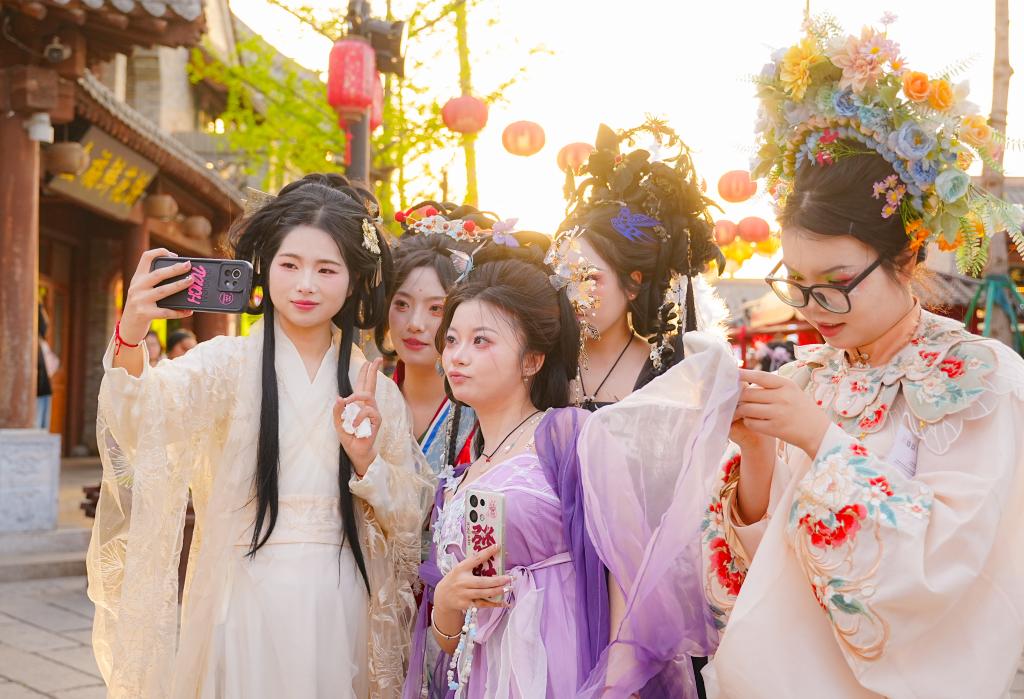 通過(guò)將傳統(tǒng)服飾與國(guó)色牡丹巧妙結(jié)合,為游客營(yíng)造出沉浸式的古韻氛圍,到洛陽(yáng)“穿漢服、賞牡丹”已成為當(dāng)?shù)貥O具代表性的熱門(mén)體驗(yàn)項(xiàng)目。以洛邑古城所在的老城區(qū)為例,2024年全區(qū)漢服店發(fā)展至1100余家,催生“妝娘”“簪娘”“跟拍師”等新職業(yè),帶動(dòng)相關(guān)從業(yè)人員近3萬(wàn)余人,綜合帶動(dòng)景區(qū)、民宿、餐飲、交通、婚禮、文創(chuàng)等多業(yè)態(tài)融合發(fā)展。全年接待游客量突破4000萬(wàn)人次,旅游綜合收入超300億元,其中漢服體驗(yàn)520萬(wàn)人次,帶動(dòng)消費(fèi)8.79億元。