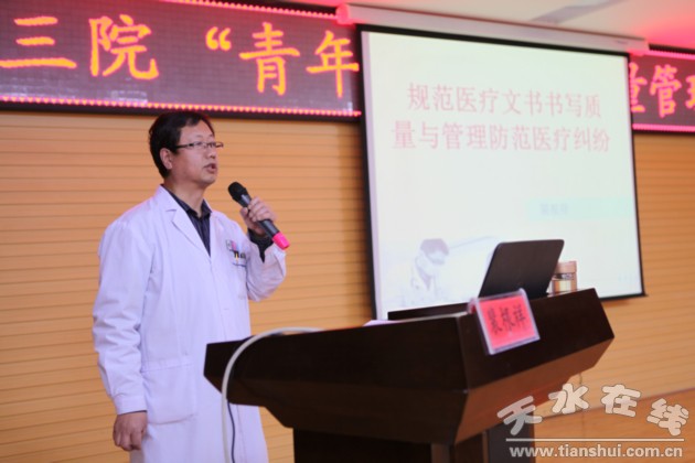 近期,天水市三院組織開展了以全面質(zhì)量管理思想為指導(dǎo),以提高病案內(nèi)涵質(zhì)量、保障醫(yī)療安全、維護醫(yī)患雙方權(quán)益的為主題的病案質(zhì)量管理活動。11月16日下午,本次活動的重點內(nèi)容“青年醫(yī)生病歷質(zhì)量管理”培訓(xùn)班拉開了序幕,并舉行了開班儀式。