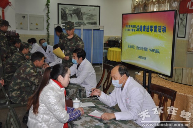近期,天水市中醫(yī)醫(yī)院組織省、市級名中醫(yī)來到駐天水市中國人民解放軍96363部隊,開展了以“心系官兵健康,軍民攜手共筑中國強軍夢”為主題的送健康進軍營活動。
